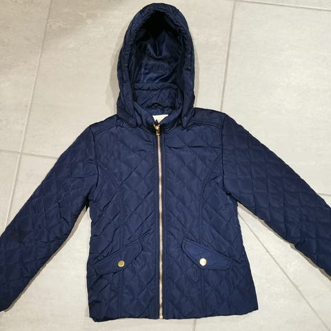 Myydään yhden kerran päällä ollut tikkitakki. Väri on tummansininen. Koko on 128cm. Takkiin kuuluu myös huppu. Harmaa trikookankainen huppu on irroitettavissa helposti (tarrakiinnitys). Voit katsoa miltä takki näyttää hupulla toisesta ilmoituksestani.