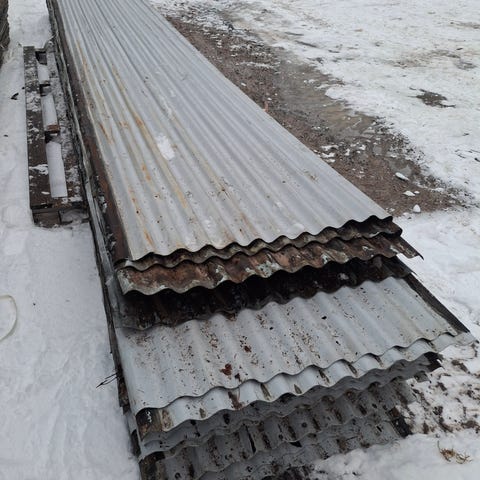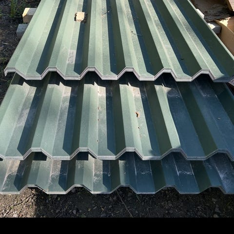 Yhteensä 80 metriä, hintaan 7 euroa metri eli koko satsi yhteishintaan 560 euroa. Ei yksittäisiä peltejä myynnissä, vain koko määrä kerralla.