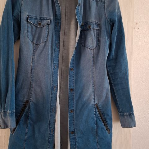 Farkkutakki vaalea vyötärömittainen kirjailtu koko M/L