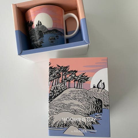 Sesonki muumimukit vuosilta 2017-2022, sekä lisäksi vuoden 2023 talvimuki.