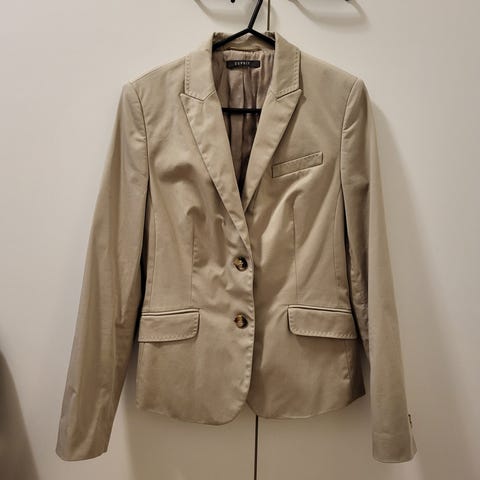 Pehmeä collegebleiseri, jossa edessä napitus, kaksi pientä taskua ja napitus hihansuissa. Harjattu sisäpinta.