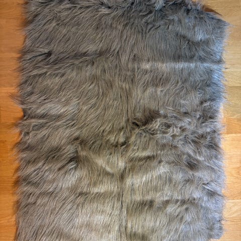 Laatikollinen sinistä tekokarvaa. Kangastukusta ostettu.