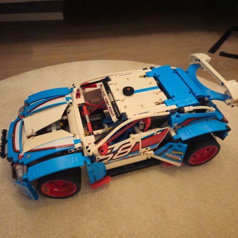LEGO Technic Kilpa-auto, koostuu useista osista, sisältää renkaat ja ohjausmekanismin. Värit vihreä, sininen ja harmaa. Sopii rakenteluleikkeihin ja teknisten mallien kokoamiseen.