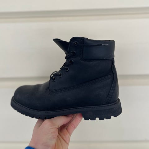 Naisten mustat Timberland kengät koossa 38. On sirompaa mallia, eli aika kaposat. Muuten hyvässä kunnossa, mutta käytönjälkiä näkyy eikä kenkiä ole putsattu.