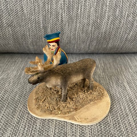Myydään vanha saamelais koriste, poron karvaa, puuta ja kangasta,korkeus puiden ylä osaan noin 30cm. Kysy lisää tori viestillä. Nouto/postitus