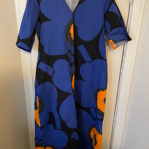 Myydään Marimekko Kemut Unikko mekko, koko 40. Käyttämätön ja laput paikoillaan. Sivutaskut, vyö ja halkio alahelmassa.