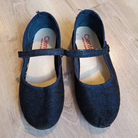 Kimalleballerinat tekonahkaa. Kimaltava joustonauha jalan päällä ja ripsinauhareuna.
