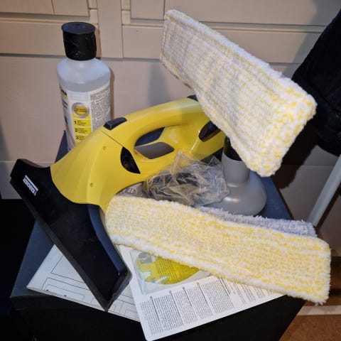 Käyttämättömänä kaapissa pyörinyt,kerran ladattu ja käytetty ikkunanpesusetti.Kaikki tarvikkeet laatikossa tallella ohjekirjoineen.Sopimuksen mukaan myös Espoosta.