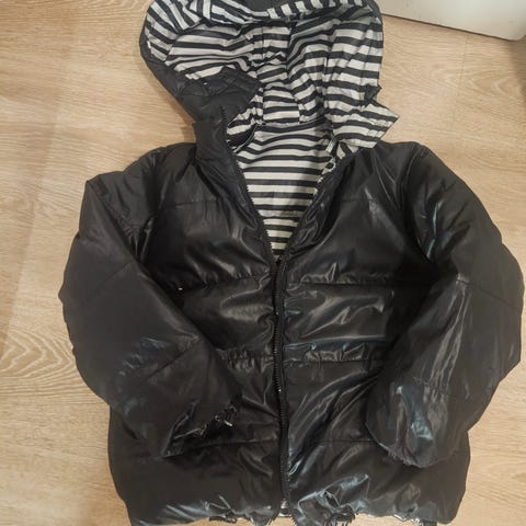 Myyntiin Marimekon Samu-Jussi Kosken suunnittelema toppatakki / talvitakki / lämmin untuvatakki, kyseessä on kääntötakki (ks. kuvat). Hyvässä kunnossa, koko: 128.