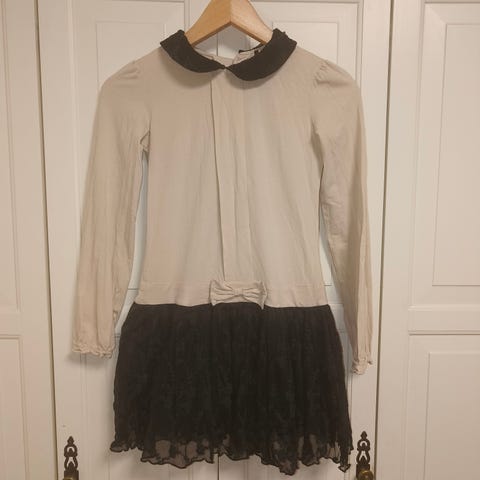 Ihana kermanvärinen kerran käytetty Rosemunde juhlamekko kokoa 10v/144 cm. Etuosan pituus 75 cm.