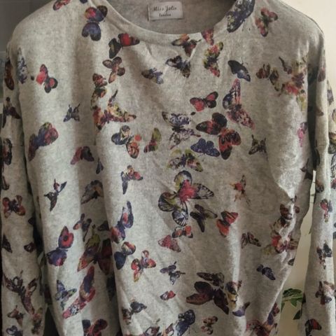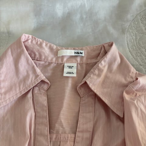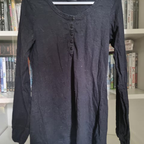 H&M:n pusero, jossa pitkät pitsihihat ja -kaulus. Materiaali hihoissa ja kauluksessa 91 % polyamidi, 9 % elastaani, vartalossa 95 % puuvilla, 5 % elastaani.