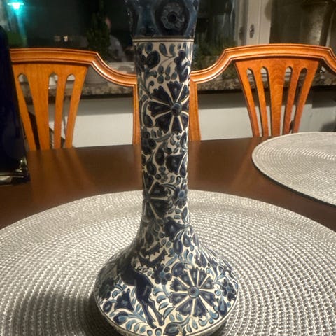 Valkoinen siro maljakko, jota Arabia on valmistanut vuosina 1964-71. Maljakon korkeus on 24 cm. Hyvä yhden kukan maljakko.