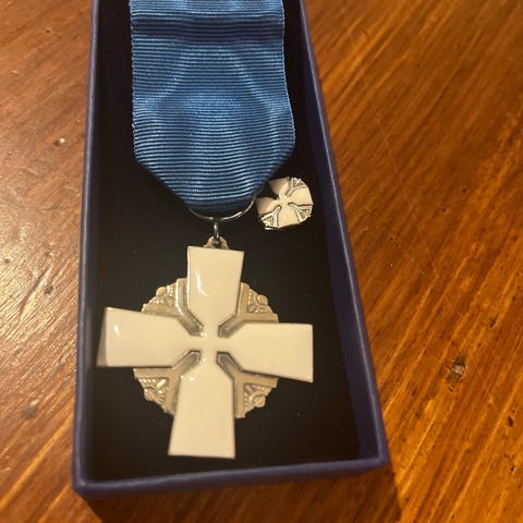 Kultainen ansiomerkki 40vuoden työelämästä.Kullautta hopeeta