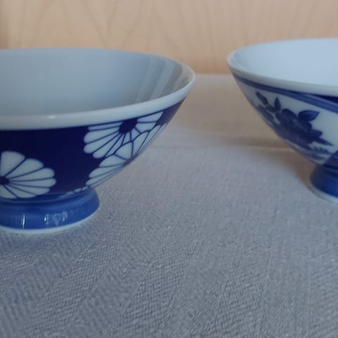 Kiinalaiset riisiposliini-kulhot + lusikat