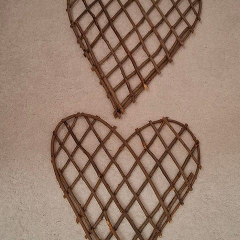 Sisustukselliset, isot paju sydämet 2kpl./15,-kpl.