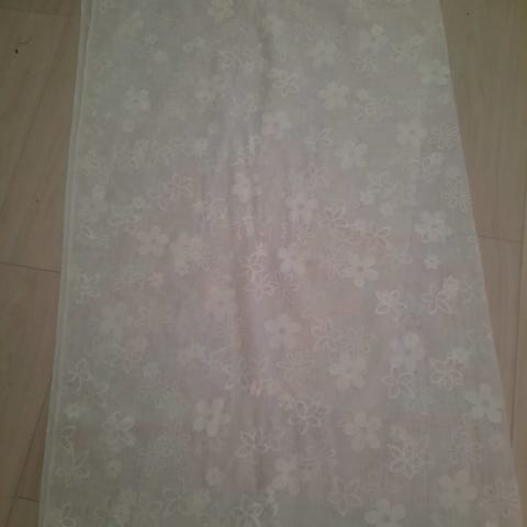 Uusi pitkä 5 metrin pätkä ohutta , kaunista voilee verhokangasta. Kankaan leveys 115cm ja pituus 5 metriä. Kangas on paljon kauniimpaa kuin kuva antaa ymmärtää.