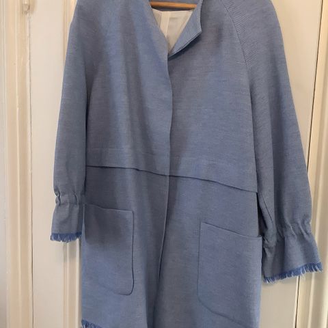 Zara takki, kaunis vaaleansininen ( väri ei onnistunut kuvissa ) , materiaali 65 % polyesteri, 35%. % puuvillaa, vuori polyesteriä.