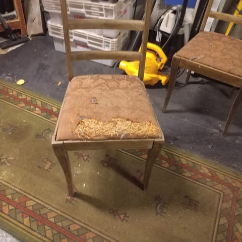 Vanhoja 70- luvun koulutuolelja. Tukevia. Tuoleja useampia. Kaikissa köytön jälkiä, osassa enemmän osassa vähemmän. Maalaamalla/petsaamalla/lakkaamalla näistä saa oman näköiset ja kestävät käyttötuolit.
