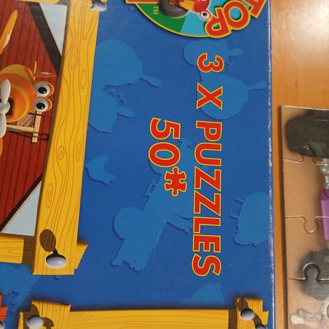 Puiset palapelit, kissa ja autonpesu. Molemmissa 30 palaa. Kissapalapelistä yksi pala poikki, näkyy kuvassa. Laatikko kärsinyt. Yhteensä 5e.