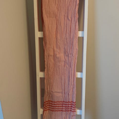 käyttämätön italialainen vekitetty GANT huivi. Materiaali 70 % pellava, 30 % viskoosi. Koko 190x45 cm + hapsut.