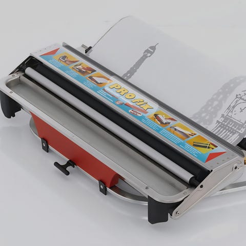 Profix liisteröintilaitteessa työleveys on 56 cm. Liisteröintilaitteella tapetit liisteröidään siististi ja nopeasti vetämällä tapetti laitteen läpi.
