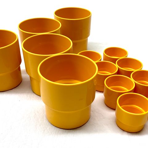 Myydään settinä 4 kpl Sarvis-kuppeja (109) ja 4 kpl Katrilli-lautasia (845) sekä yksi kippo ? (421) vaikka kurkku/tomaattiviipaleille. Nämä Tauno Tarnan suunnittelemia.