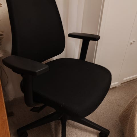 Myydään valkoinen työtuoli. Korkeus säädettävissä. Pinnassa pientä kulumaa ja pari pientä tahraa, näkyy kuvissa. Päälliset irrotettavat ja pestävät.