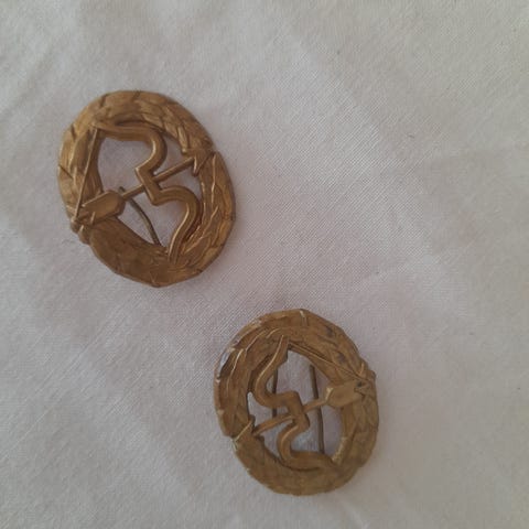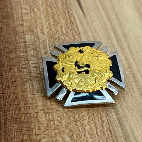 Myydään kuvan vanha merkki. Tunnistettu Savon prikaatin joukko-osasto merkiksi.