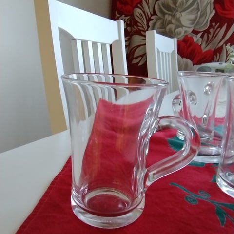 Sinisävyiset kuumajuomalasit / glögilasit korvalla
