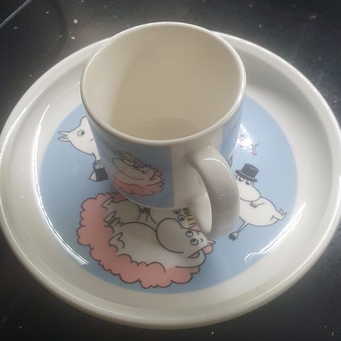 Myydään erittäin hyvä kuntoinen lasten astiasetti, muki ja lautanen. Teemana Muumien Muumipeikko. Arabian setti. Alkuperäispakkauksessaan. Myös nouto mahdollinen.