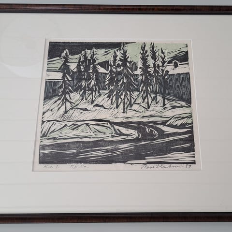 Ilppo Heikuri "Orastava maa" E.A Épreuve d'artiste I vedos mitat kehysten päältä korkeus n.48cm leveys n.55,5cm kuva-ala korkeus n.31cm leveys n.39cm