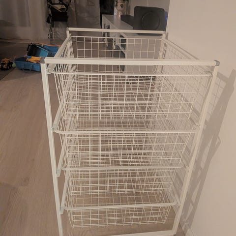 Hyvin vähällä käytöllä ollut koriteline, mittausvirheen takia ei mahtunutkaan vaatekaappiin. Valmiiksi koottu. Tarkemmat tuotetiedot: https://www.karkkainen.com/verkkokauppa/jaakko-harmaa-koriteline?searchTerm=JAAKKO%20HARM%20%2054X44X70%20CM%20KORITELINE
