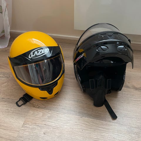 kypäriin. Visiirit uusia suojapusseissaan. Voin laittaa parempia