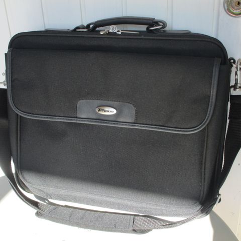 Marshall Bergman -merkkinen musta tietokonelaukku. Tosi siistissä kunnossa. L 43, k 30, s7, paljon taskuja.