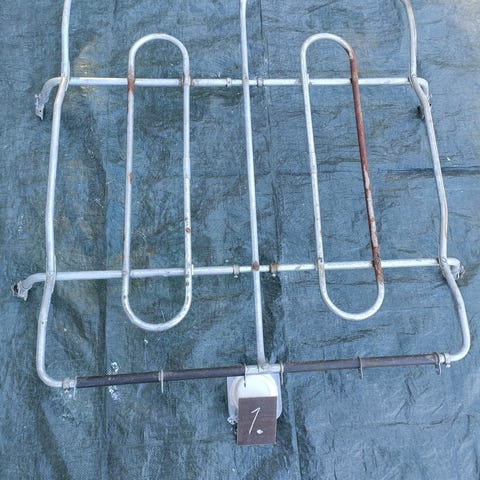 Vintage kattotelineet. Pinta ruostetta, muuten kunnossa. Kiinnikkeen etäisyys pituus suunnassa 59cm. Leveyttä voi säätää.