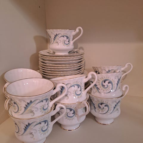 12× kuppi+ aluslautanen+ pullalautanen. Hinta 180. Erikseen en myy, Nouto Nakkilasta!!