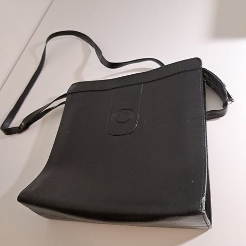 Hieno, nahkaa jäljittelevä materiaali. Laukku on painavahko ja vaikuttaa kestävältä kantaa painavempaakin tavaraa.