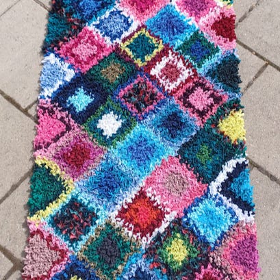 Myytävänä uusi boho käsin matonkuteista solmittu matto. En ole ammattilainen, joten hyvin pieniä virheitä voi löytyä mitkä ei näy päälle päin. Yhden maton solmimiseen iltaisin päivätyön jälkeen menee parisen kuukautta, mutta hauska harrastus tylsinä talvi-iltoina. Pohjana liukuestematto, joten luistamaton. Itsellä näitä myös kotona ja olen pessyt useita kertoja isossa pesupussissa.