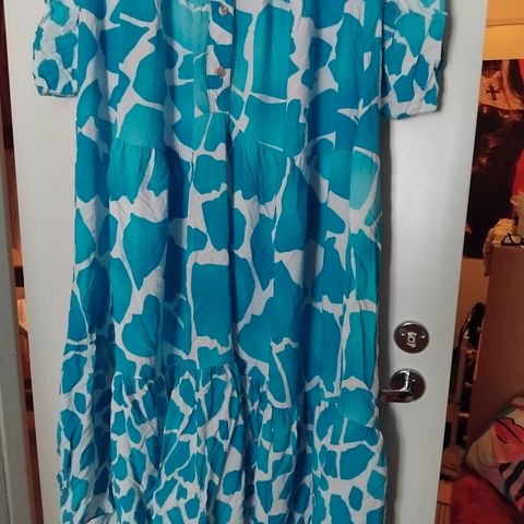 Ompelijalla teetetty joustava leopardikuvioinen trikooneulosmekko/tunika.