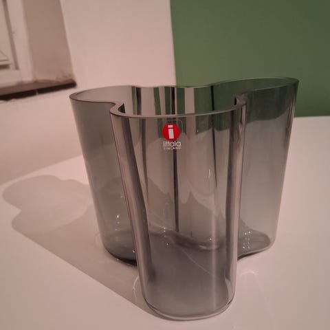 Alvar Aallon kaksivärinen valkoinen - vihreä 16cm korkea maljakko. Hyväkuntoinen, ei ole ollut käytössä koskaan maljakkona.