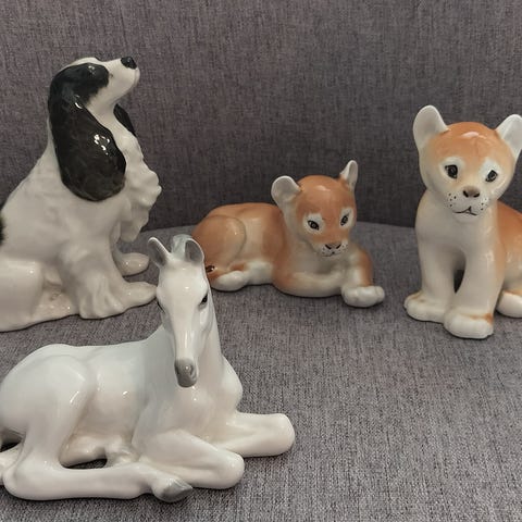 Lomonosovin tai oikeammin Keisarillisen posliinitehtaan (sittemmin Leningradin posliinitehdas, ven. Ленинградский фарфоровый завод, ЛФЗ) valmistamat eläinfiguurit: norsu (korkeus 10 cm) ja mammutti (korkeus 15 cm). Molemmat ehjiä ja moitteettomassa kunnossa. Figuurit ovat taidokkaasti käsinmaalattuja ja niitä valmistettiin vuosina 1950-1970.