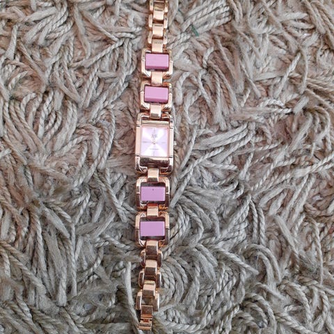 Pari kertaa käytetty, kaunis rannekello. Peruslaadukas, oli joku 40-50 € OVH. Ruusukulta ei ollutkaan oma väri, siksi myyn. Patteri tarvitsee vaihtaa sillä on nyt pysähtynyt.