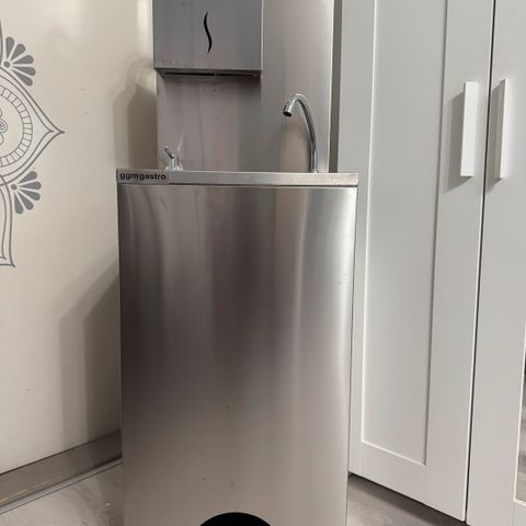 Asennusvapaa käsienpesuallas, ei vaadi asennusta vesijohtoon tai sähköön. Omat vesisäiliöt puhtaalle ja likaiselle vedelle. Helppo liikutella, 2 rengasta. Rosterinen. Altaaseen kuuluu saippuateline sekä käsipaperiteline. Vähäisellä käytöllä ollut. Mökille, puutarhaan, autotalliin, messuille. (ovh.790€) Vain nouto Kirkkonummen Veikkolasta sopimuksen mukaan.
