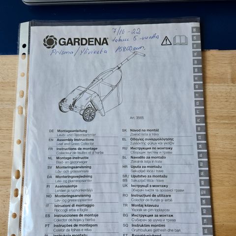 Kuvan mukainen lehtienkerääjä. Koottu ja kokeiltu että toimii.