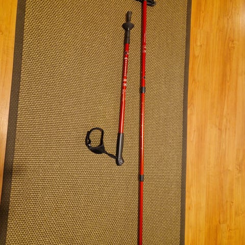 Exelin saadettävät vaellussauvat. Hyvässä kunnossa, käytetty yhdellä vaelluksella. Säätövara 110-135cm. Paino 275g per sauva.