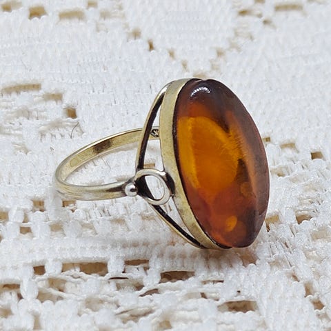 Hopeinen Meripihkasormus koko n.18
