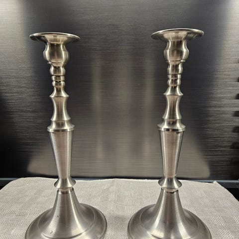 Kynttilänjalka, tinaa. Korkeus 26 cm. Pohjassa lukee King´s Pewter Thailand. Ei kolhuja. Uudenveroinen.