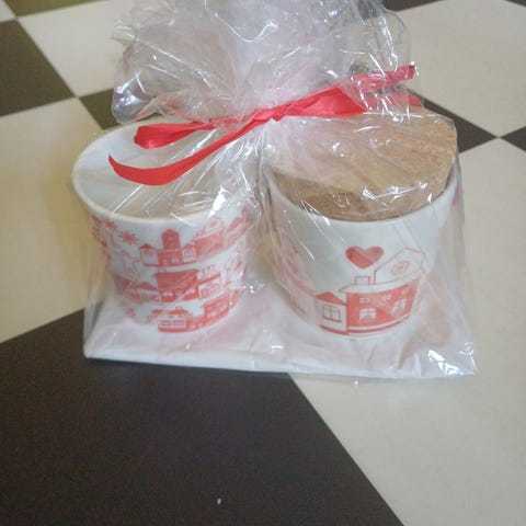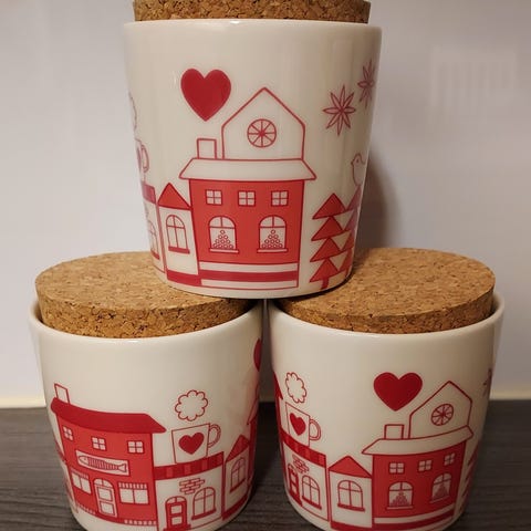 Arabia Joulukylä purkki ja korkkikansi.