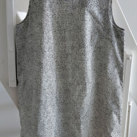 Uudenveroinen, vain paristi pidetty. Kai-kai 48, olka-helma 94. Musta-valkoinen kotelomekko, vastaa M-kokoa. Vuori on.