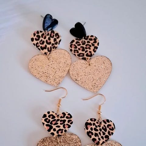 Uudet leopardi korvikset. Nikkelivapaata korumetallia ja silikonilukot mukana.